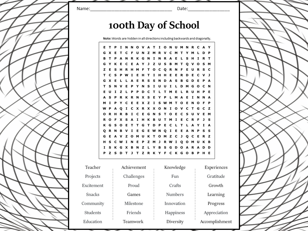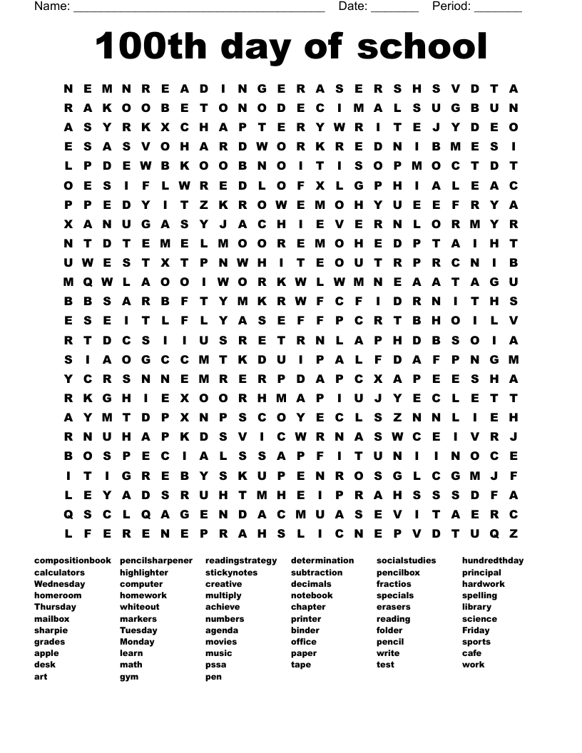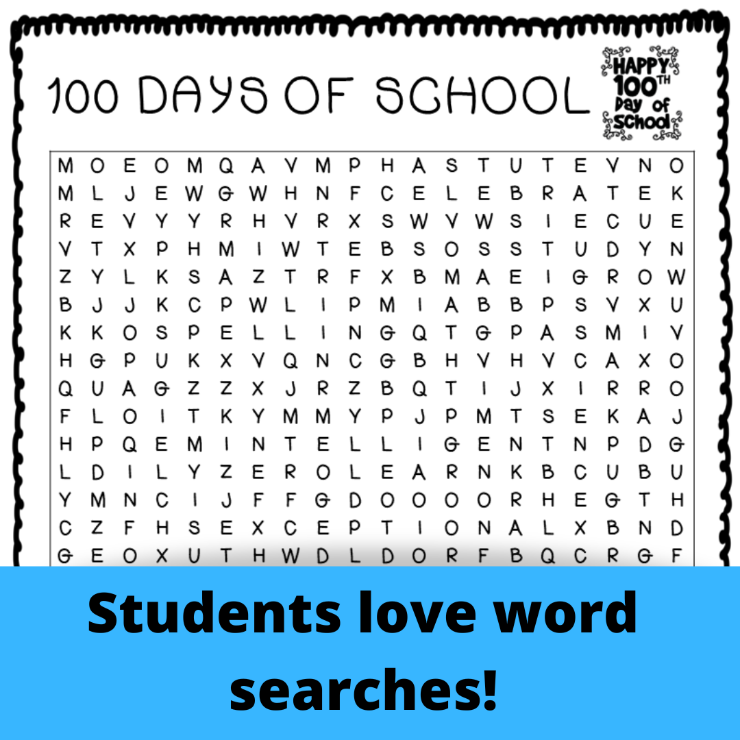 100th Day Of School Activities Word Searches Crosswords Puzzles