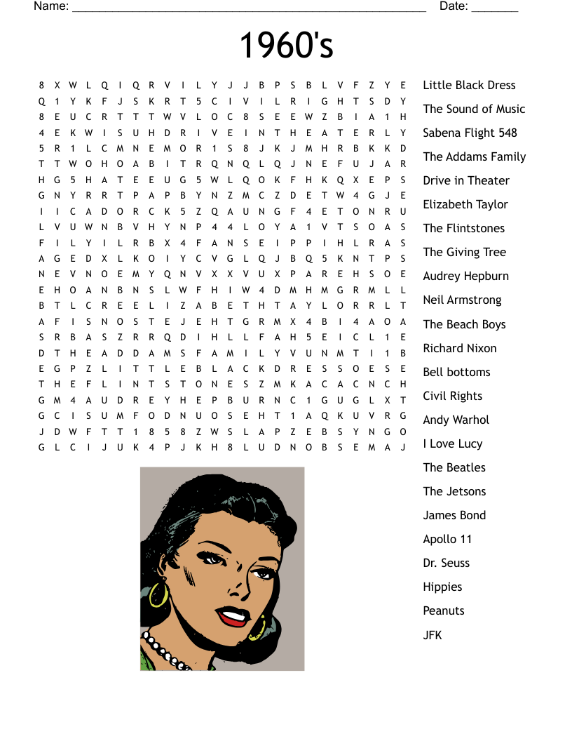 1960s Word Search Printable