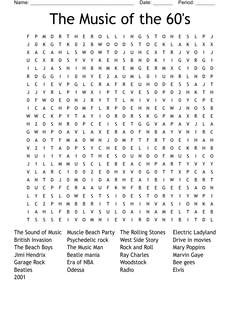 The Music Of The 60 s Word Search WordMint