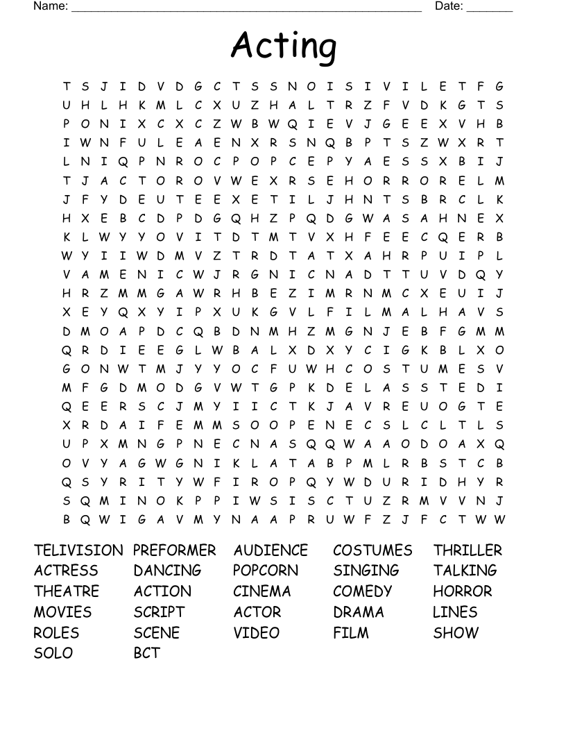 Whether you’re a seasoned actor or just a fan of the performing arts, you’ll love the challenge of finding all the hidden words in an acting word search printable. It’s a great way to test your knowledge of acting terms while having a blast with friends and family.