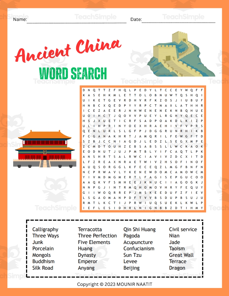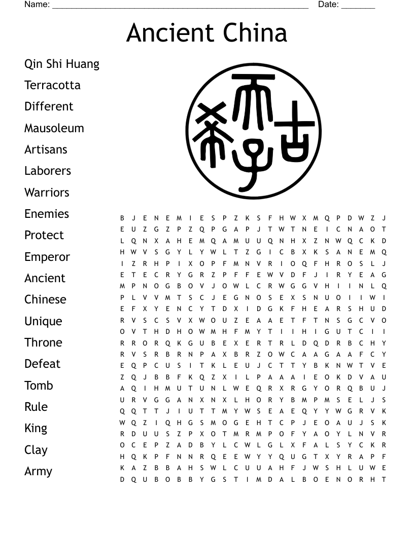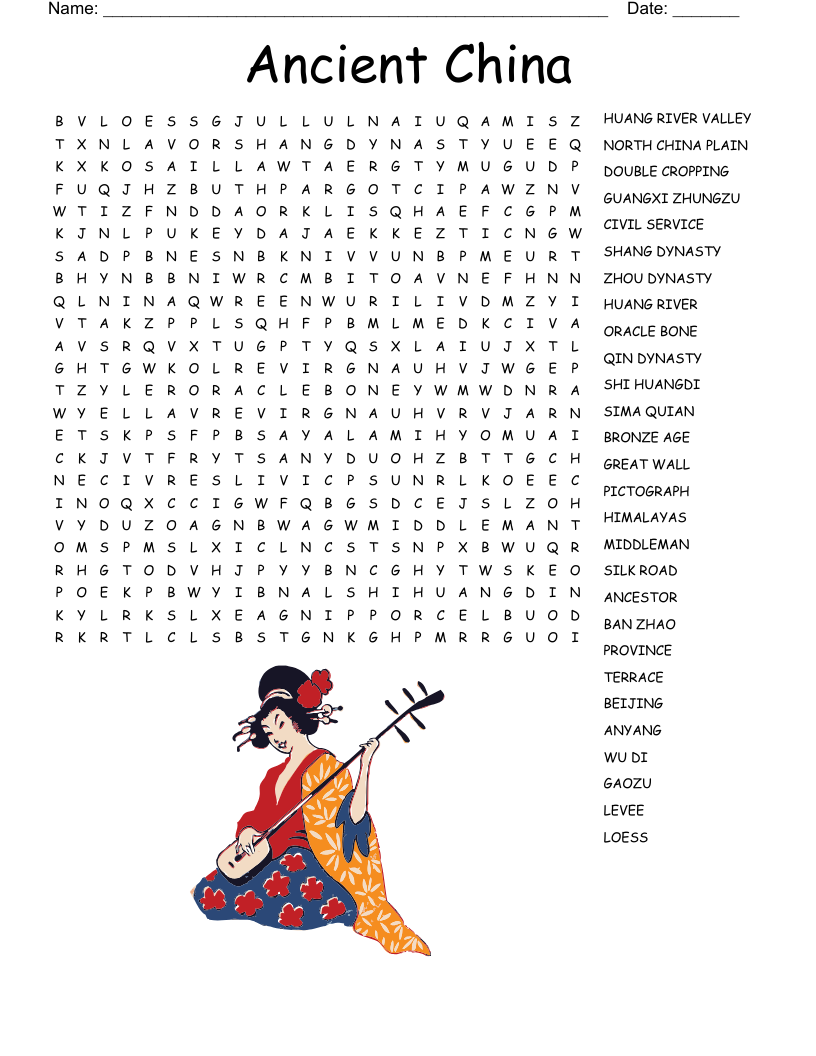 Ancient China Word Search Printable