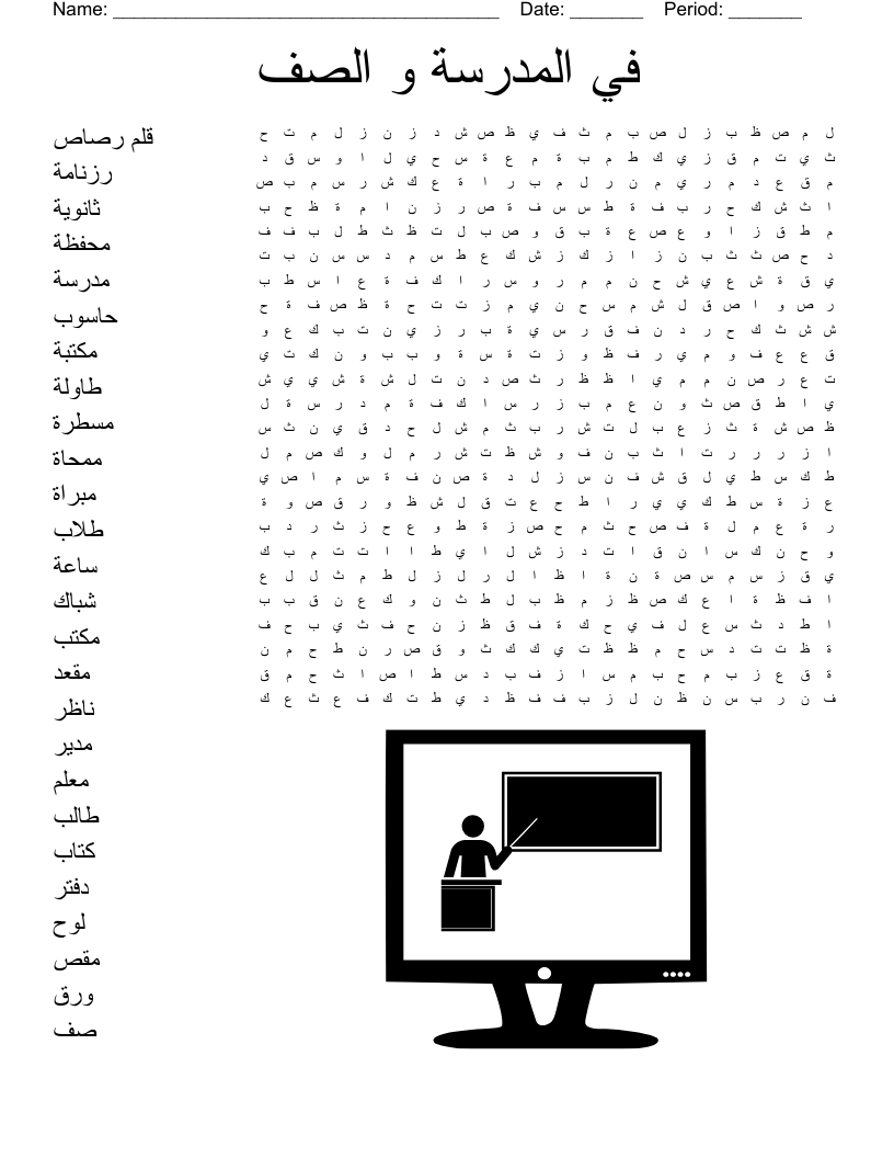 School Supplies In Arabic Word Search WordMint