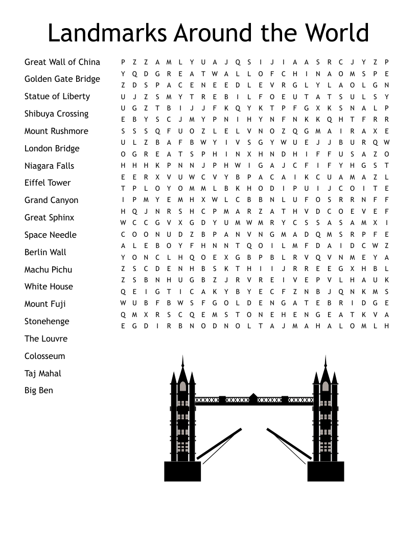 Landmarks Around The World Word Search WordMint