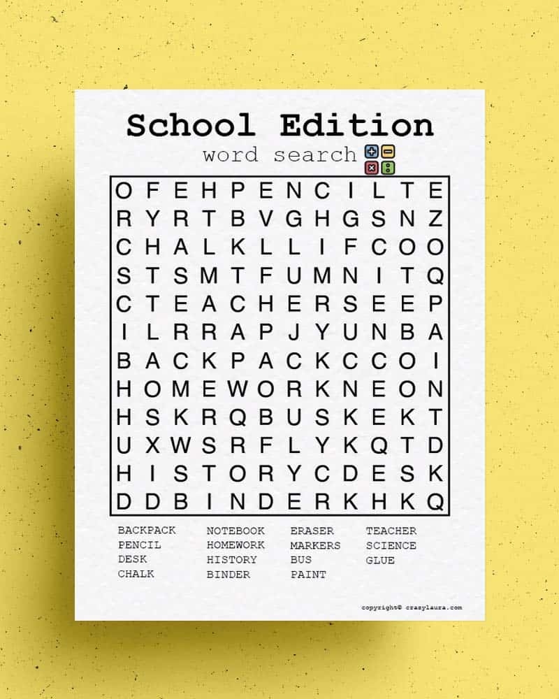 Free School Word Search Printable Games U0026 PDF Sheets Crazy Laura