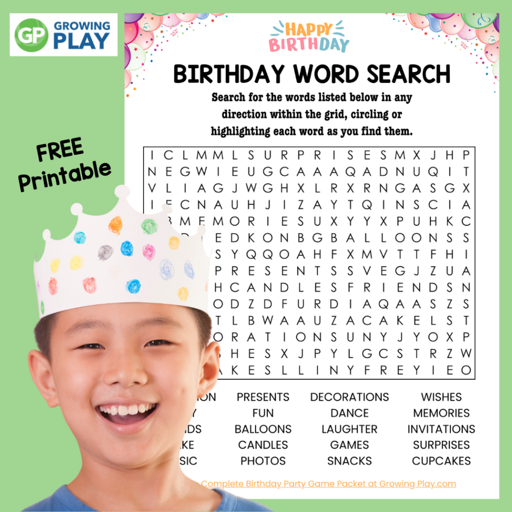 Birthday Party Word Search Free Printable Puzzle Growing Play