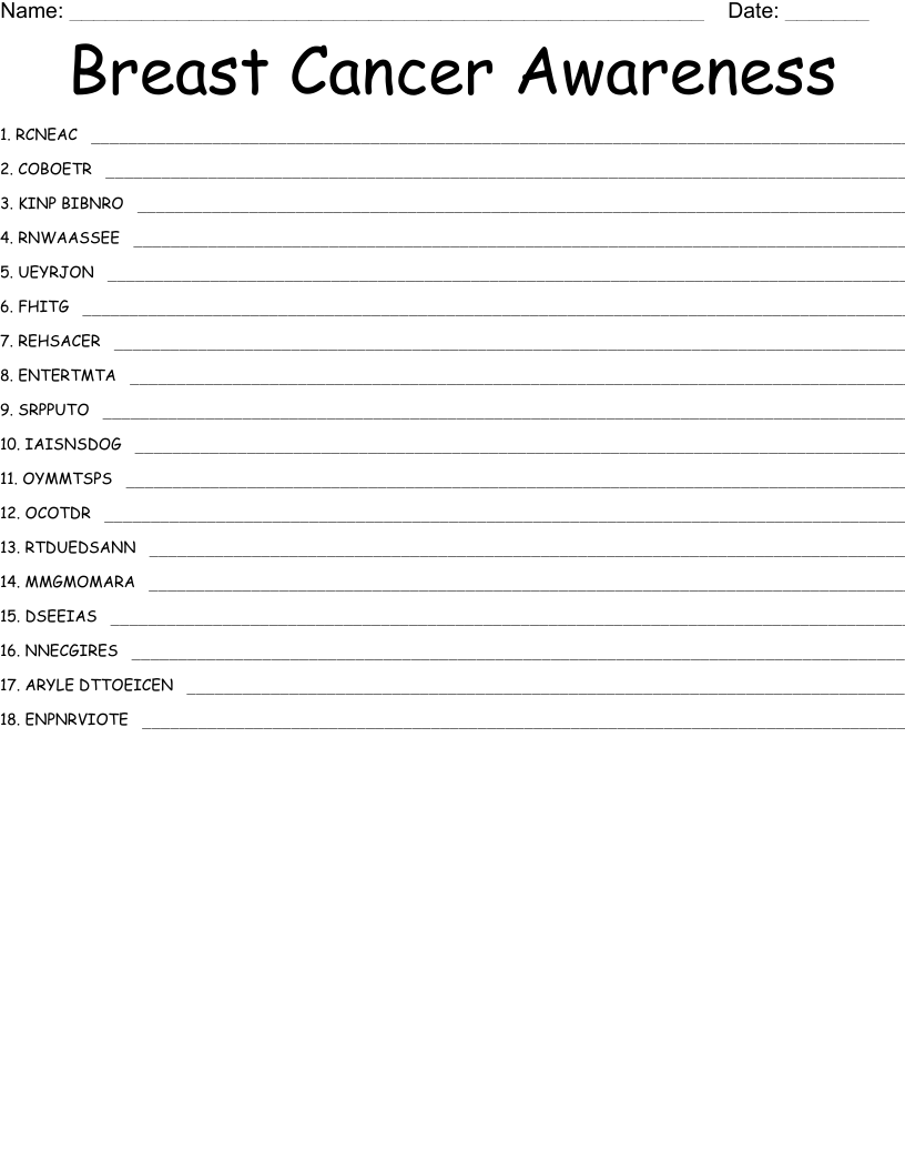 Breast Cancer Awareness Word Scramble WordMint