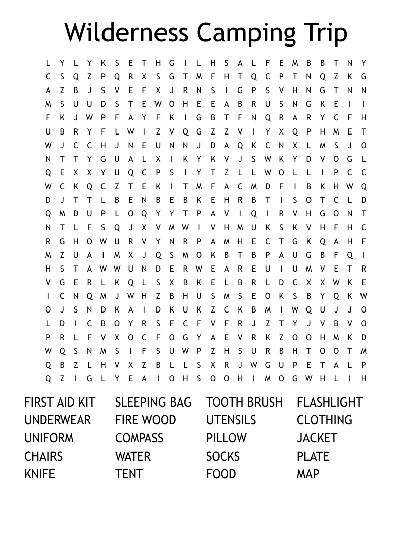 Simply download and print out the Camping Word Search Printable, grab a pen or pencil, and start searching for words hidden in the grid. You can race against each other to see who can find all the words first, or work together as a team to solve the puzzle.