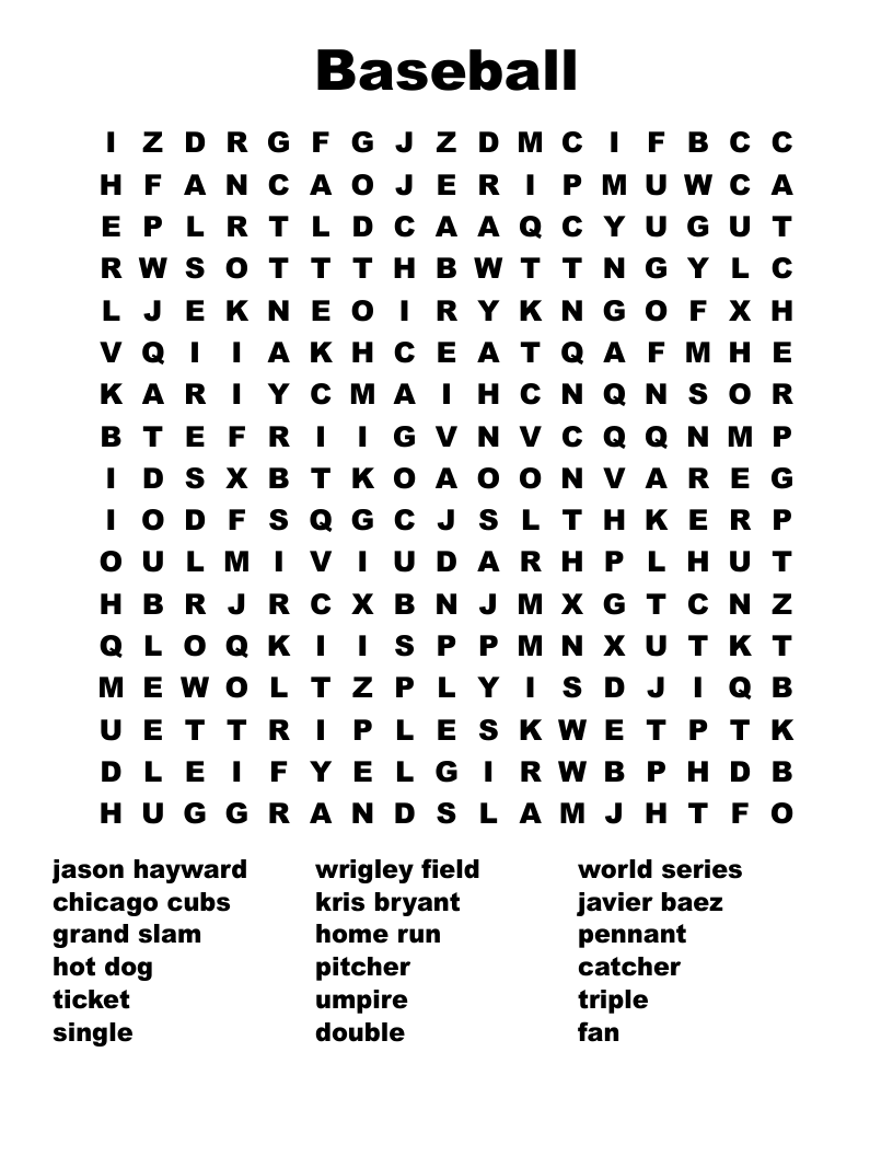 Get ready to spend hours of fun searching for Cubs-related words with our printable word search. It’s a great way to relax, unwind, and show your support for your favorite team. Download your copy today and enjoy hours of entertainment!