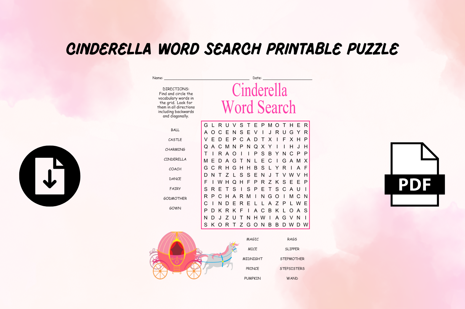 So why wait? Give your kids the gift of fun and learning with this Cinderella Word Search Printable. Who knows, they may just discover a new favorite story along the way!