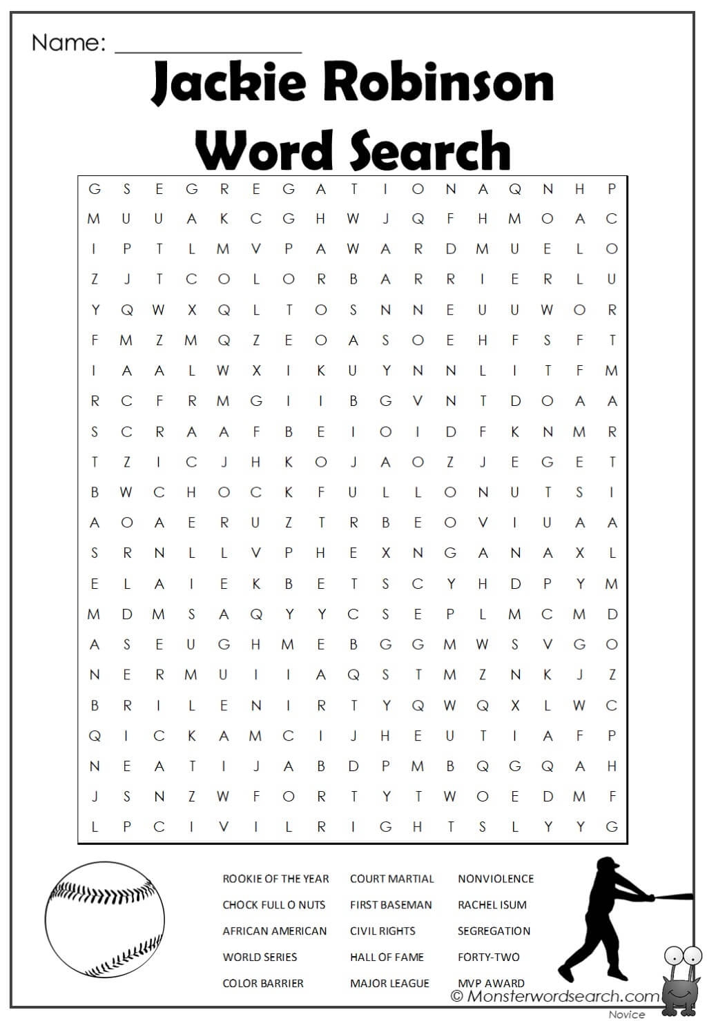 Jackie Robinson Word Search Monster Word Search