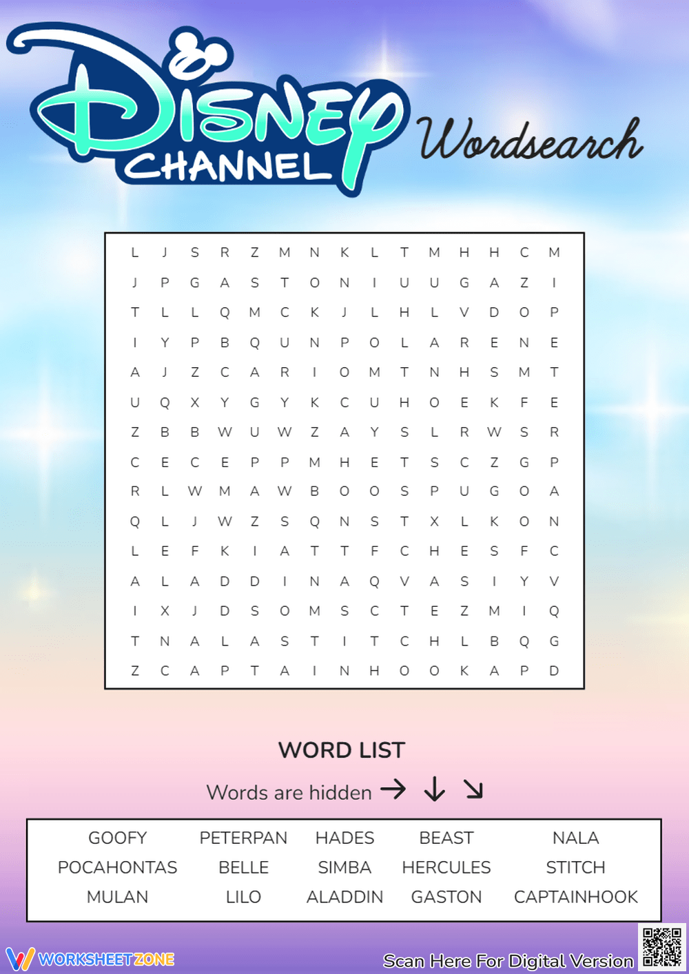 Simply print out the word search, grab a pencil, and get ready to dive into the magical world of Disney Channel. You’ll be entertained for hours as you search for names like Simba, Ariel, and Buzz Lightyear hidden in the grid.