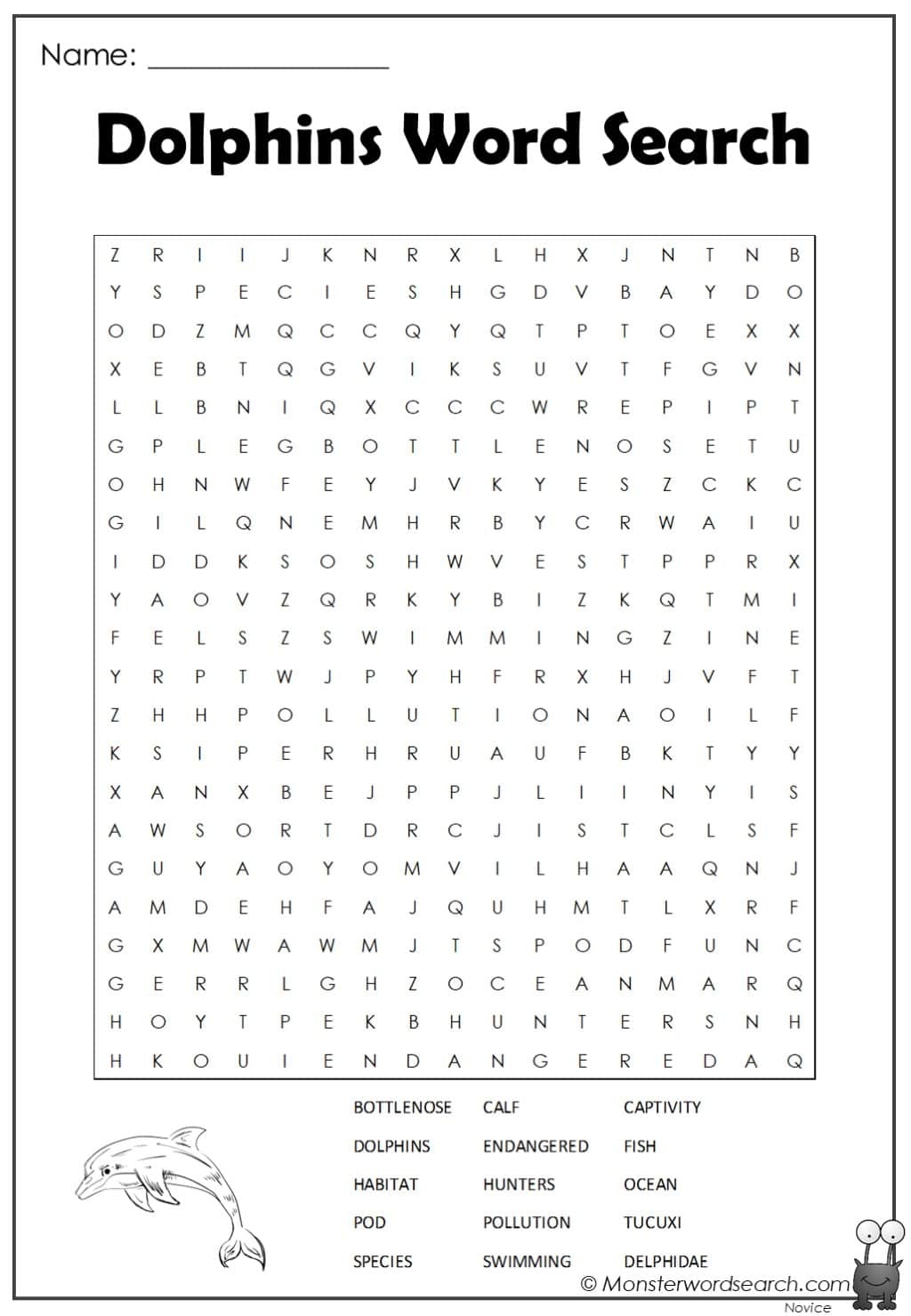 Dolphins Word Search Monster Word Search