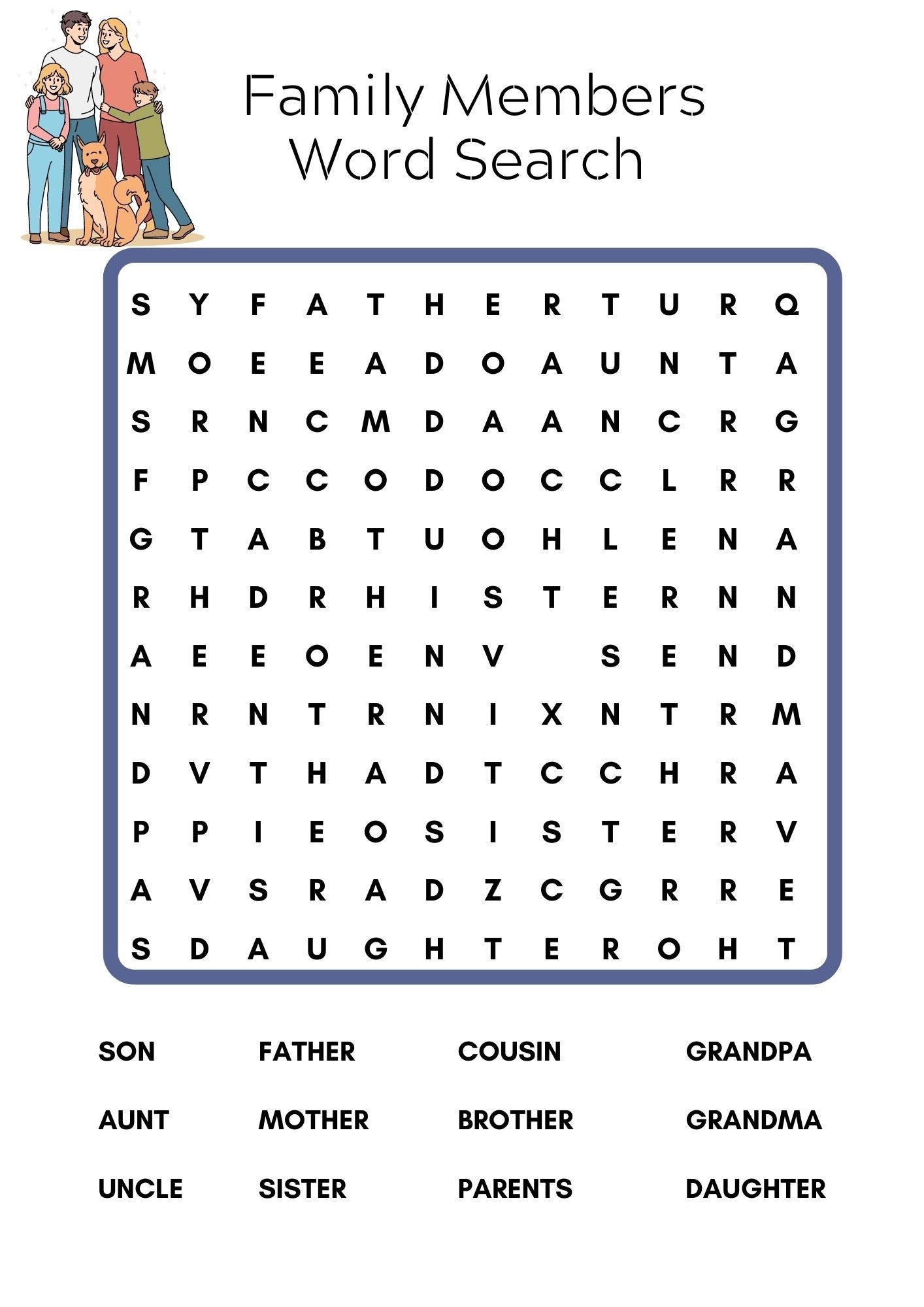 Family Word Search Printable