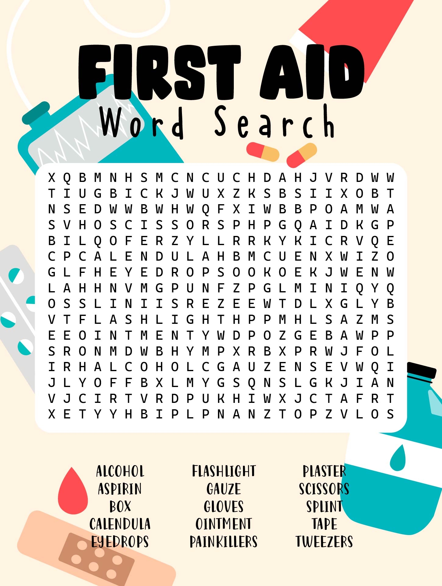 First Aid Word Search Printable