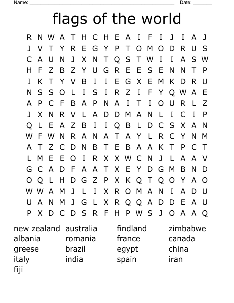 Flags Of The World Word Search WordMint