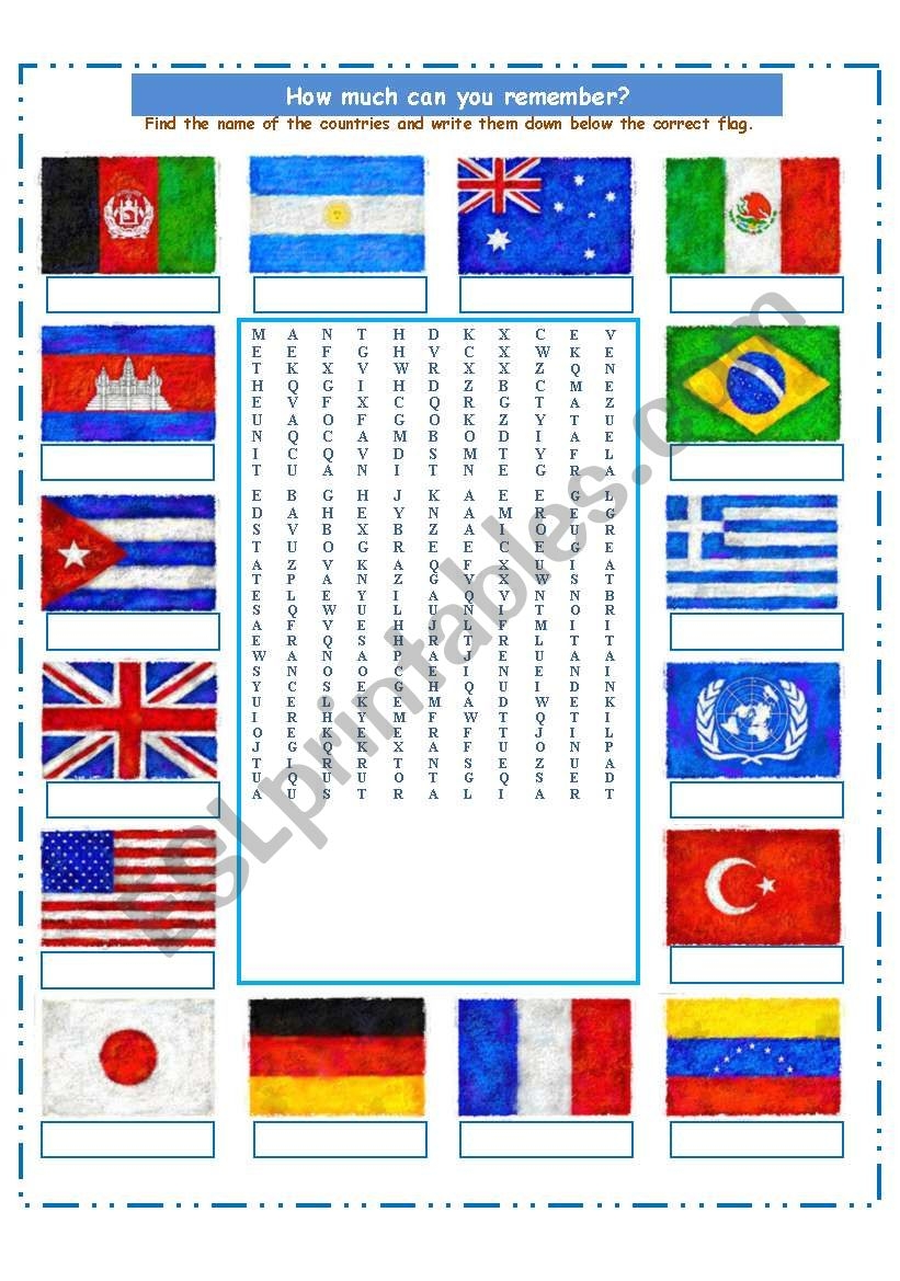 Activities Countries Flags Word Search Puzzle Worksheets Made By Teachers
