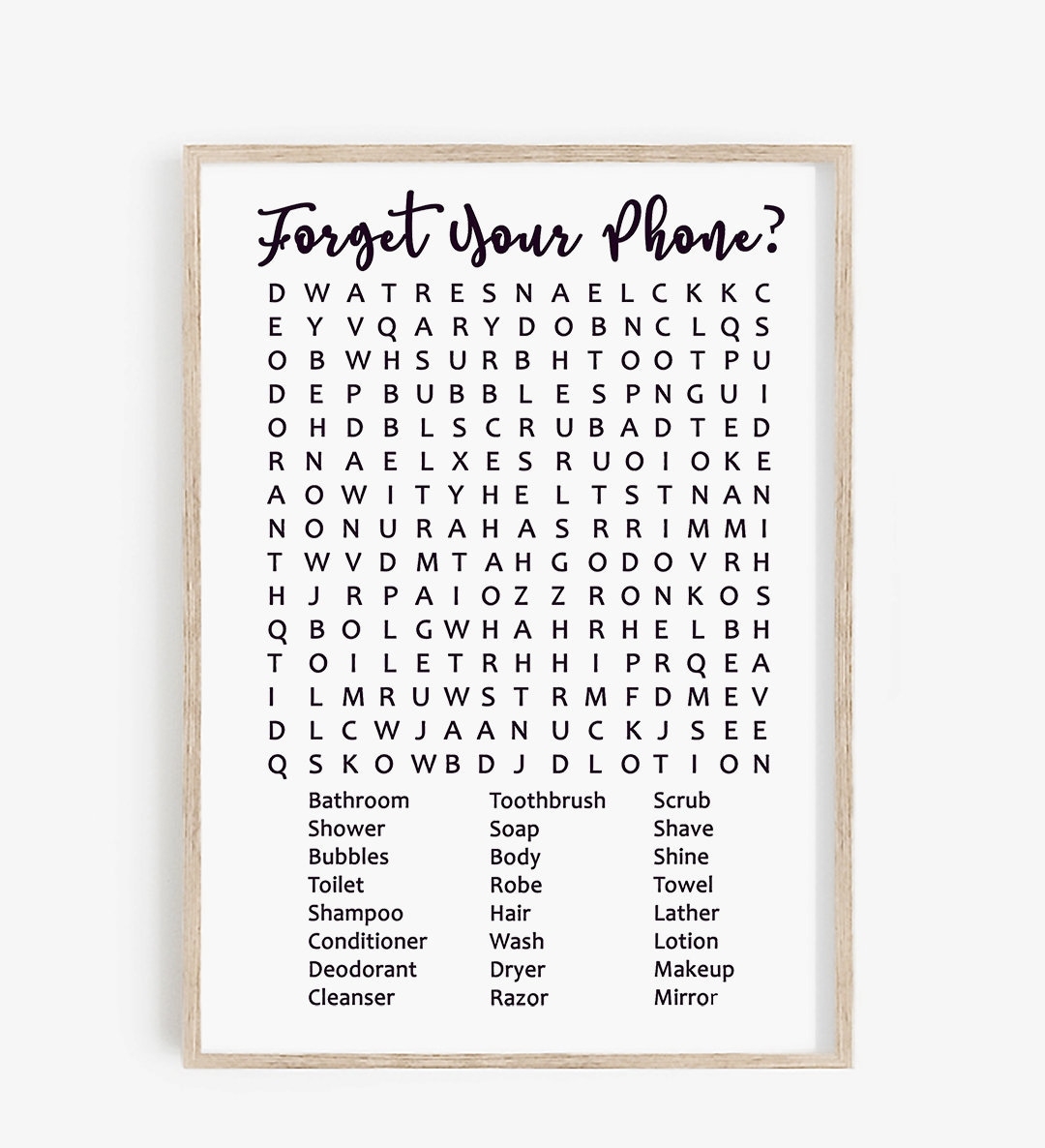 Forget Your Phone Bathroom Decor Word Search Puzzle Unframed 8×10 Inch Print Forget Your Phone Bathroom Sign Word Search Forgot Your Phone Bathroom