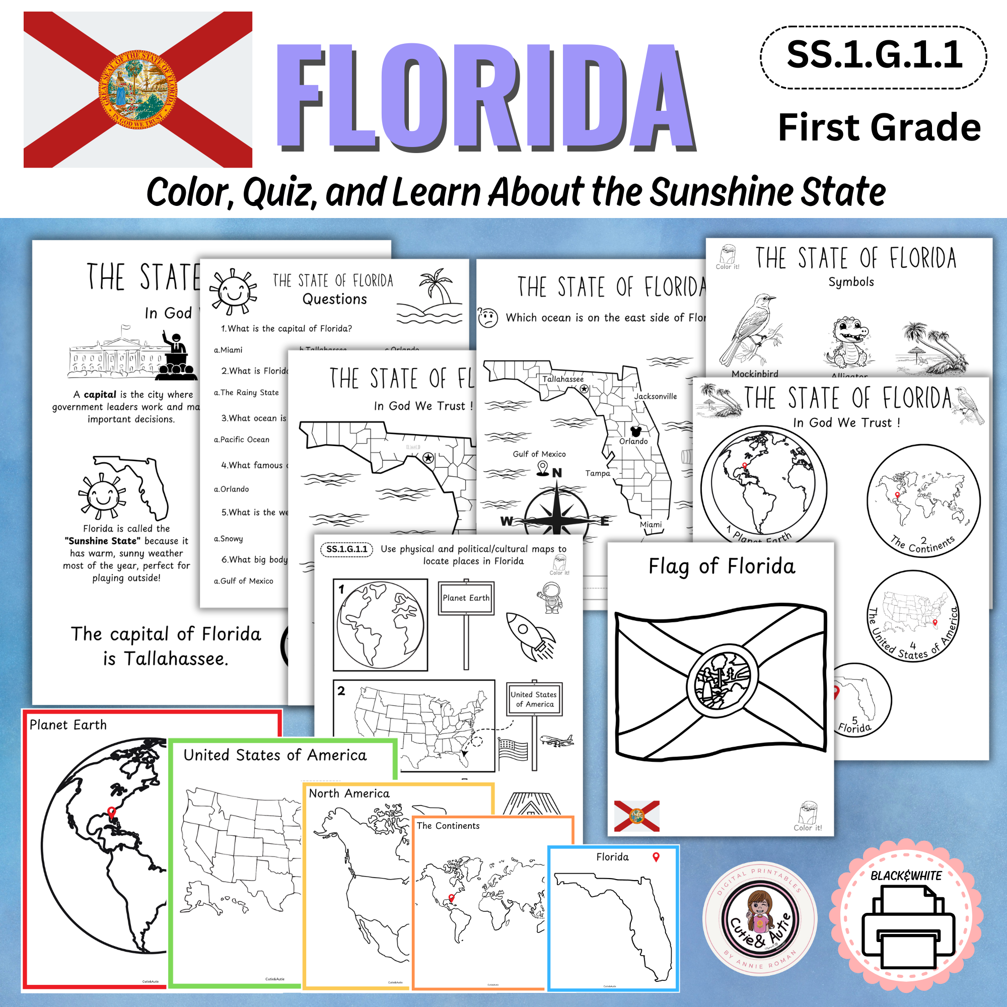 Set Of 5 Florida Worksheets State Of Florida Printable Word Search 4th Grade Worksheet Etsy