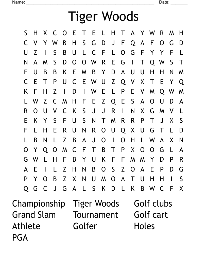 Tiger Woods Word Search WordMint