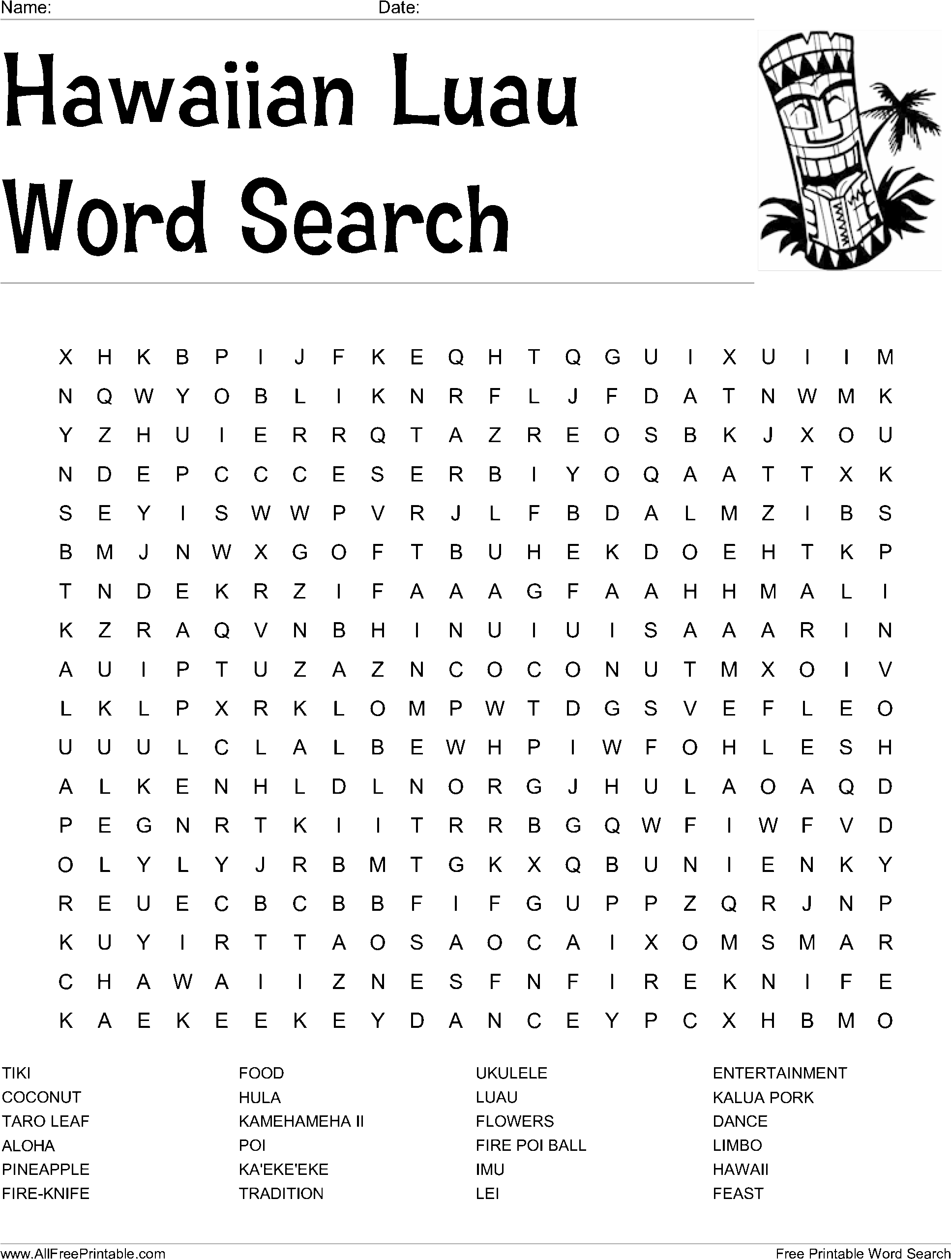 Free Printable Luau Word Search