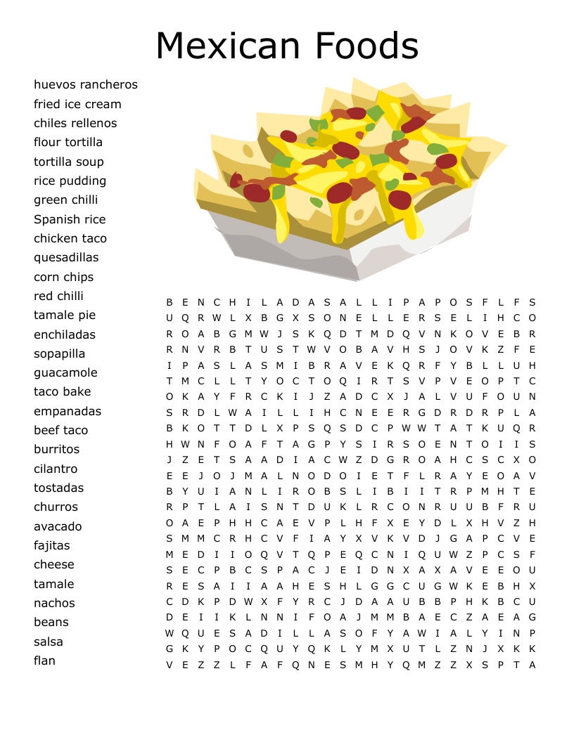 Mexican Foods Word Search WordMint