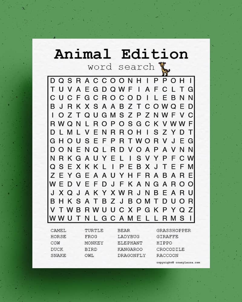 Whether you are at home, on a road trip, or waiting at the doctor’s office, word search puzzles are a perfect way to keep kids engaged and entertained. Challenge your little ones to find all the hidden words while learning fun facts about animals.