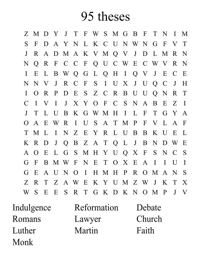 95 Theses Word Search WordMint