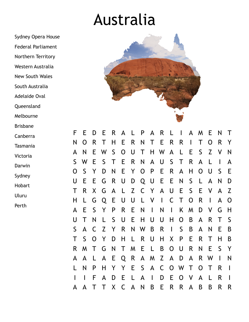Australia Word Search WordMint