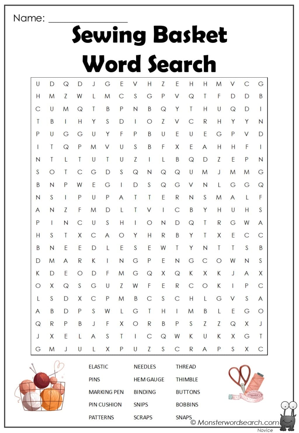 Sewing Basket Word Search Monster Word Search