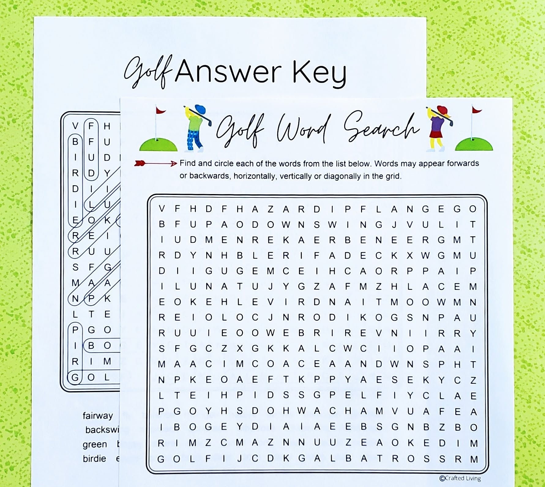 From “birdie” to “putter” to “fairway,” this word search contains all the golf-related terms you know and love. It’s a fantastic way to unwind after a long day on the course or to keep your mind sharp during the off-season.