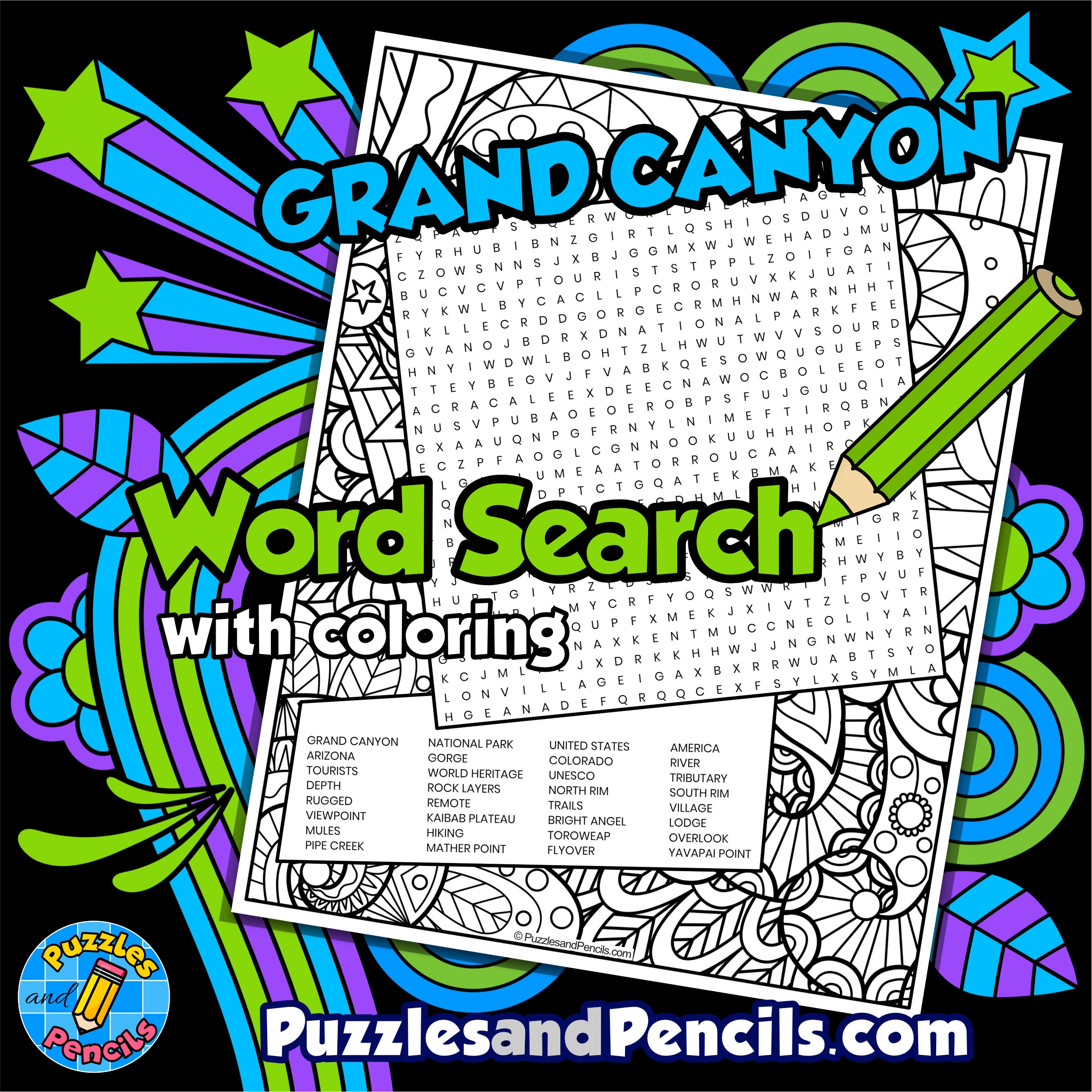 Grand Canyon Word Search Puzzle With Coloring National Park