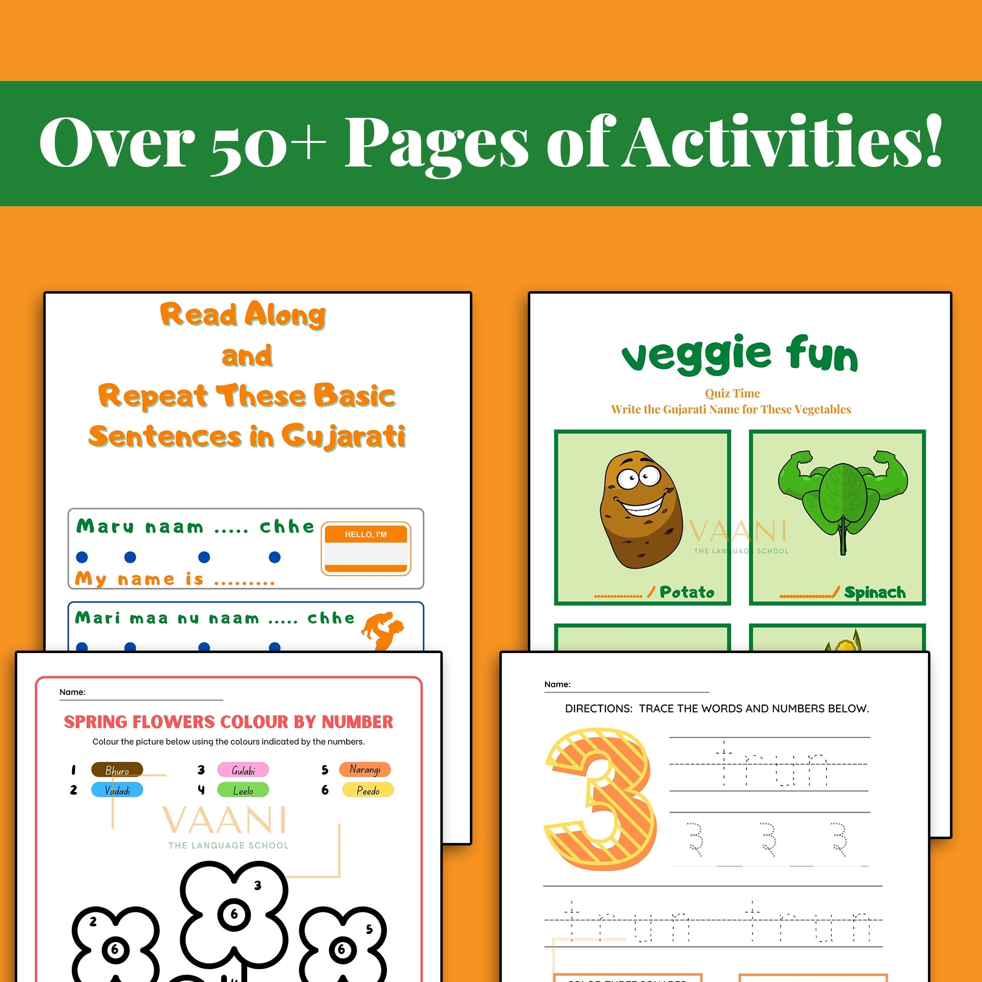 Gujarati Printable Worksheet Learn Gujarati Through English Vocabulary Sentences Numbers Word Search Quizzes Colouring And More Etsy