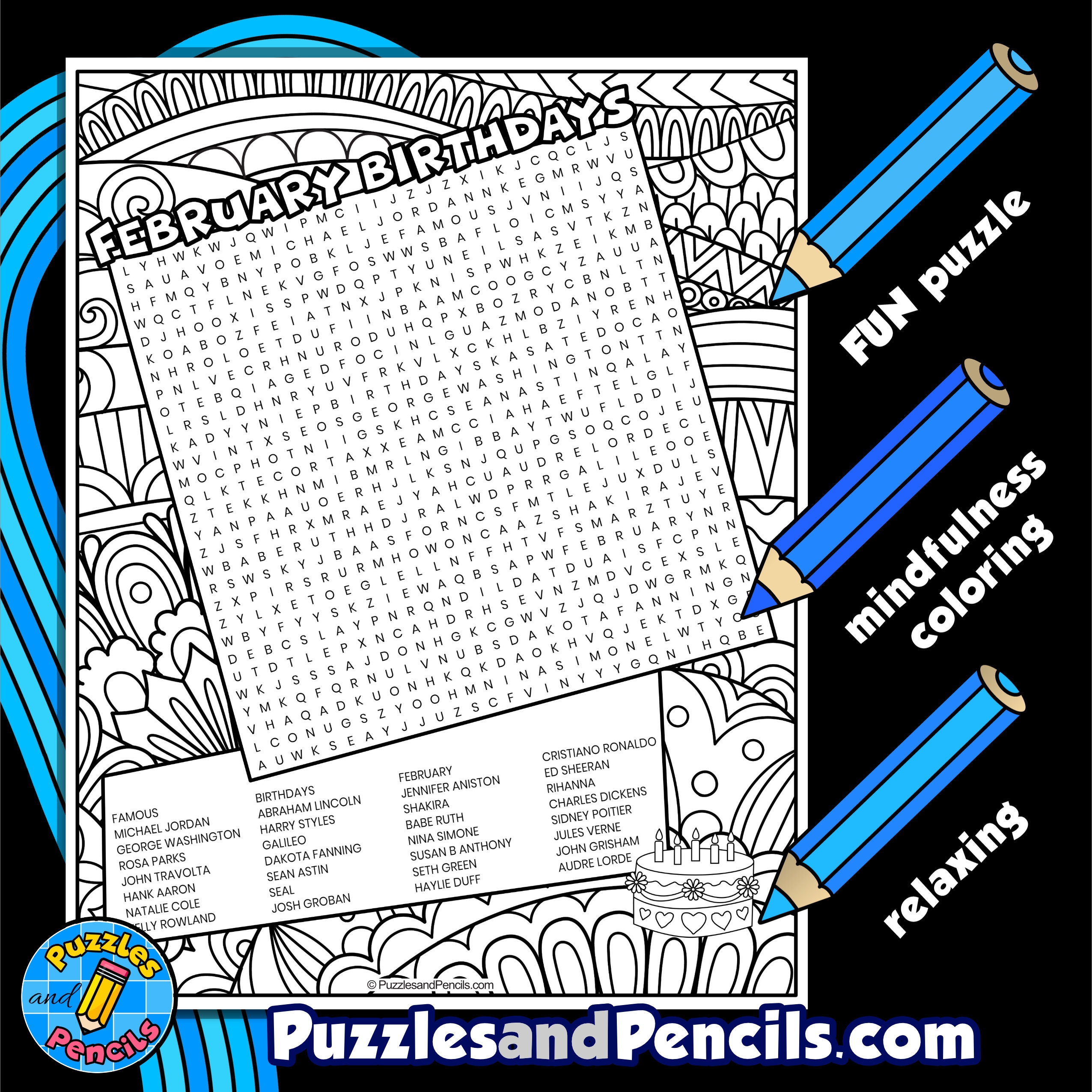 Famous February Birthdays Word Search Puzzle Activity Page With Coloring Wordsearch Made By Teachers