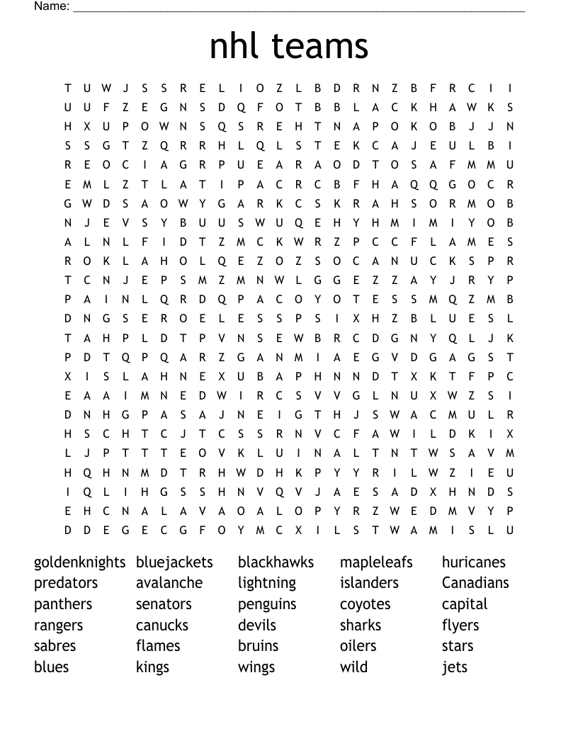 Whether you’re a seasoned hockey fan or just getting started, this word search is a great way to test your knowledge and have some fun. So grab a pencil, print out the puzzle, and see how many hockey teams you can find. Who knows, you might discover a new favorite team along the way!