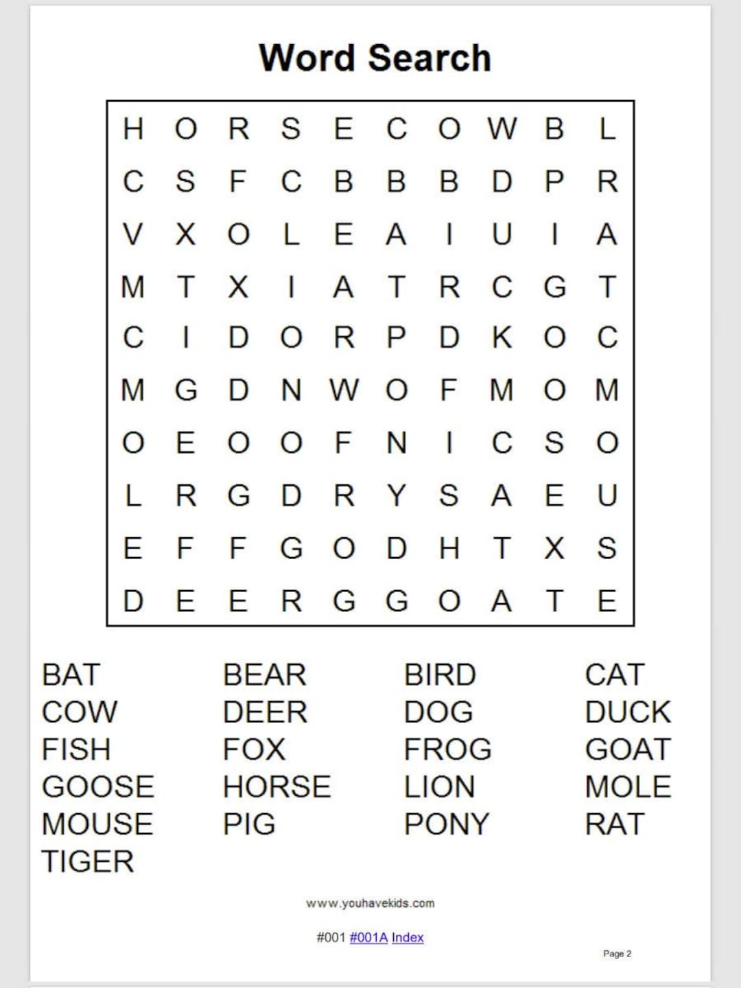 100 Printable Grade 1 Animals Word Searches With Answers Etsy UK
