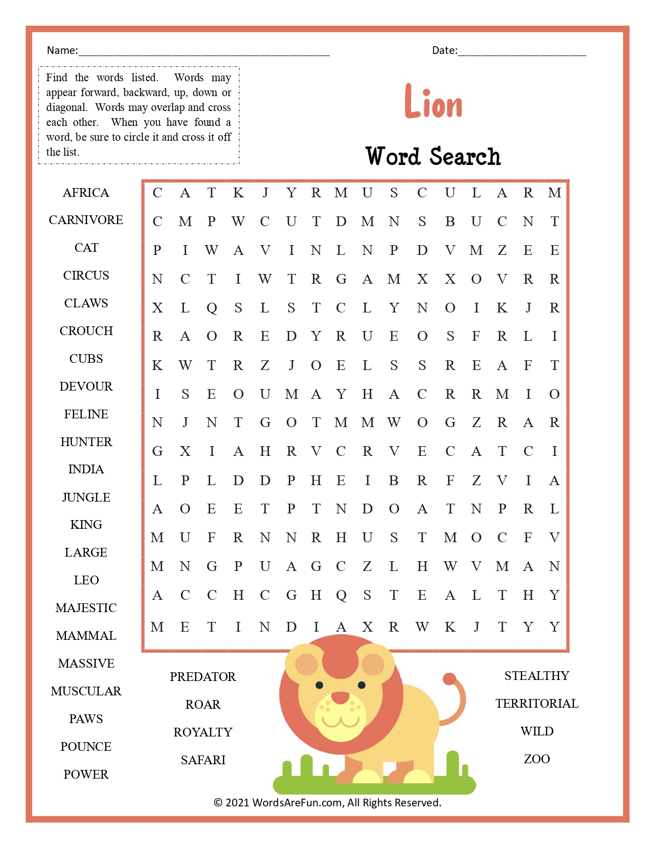 If you’re looking for a fun and engaging activity to do with your kids, look no further than a Lion Word Search Printable. This printable word search is a great way to keep your little ones entertained while also helping them improve their vocabulary and spelling skills.