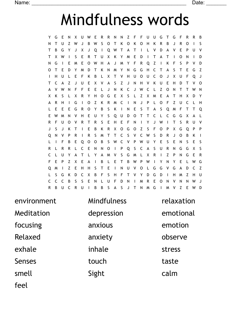 Mindfulness Word Search WordMint