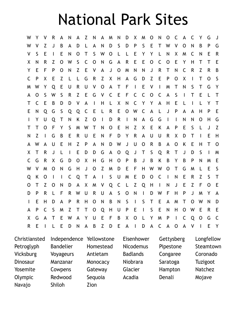 Whether you’re a seasoned puzzle pro or just starting out, our National Parks Word Search Printable is sure to provide hours of entertainment. Simply print out the puzzle, grab a pencil, and get ready to challenge your brain!