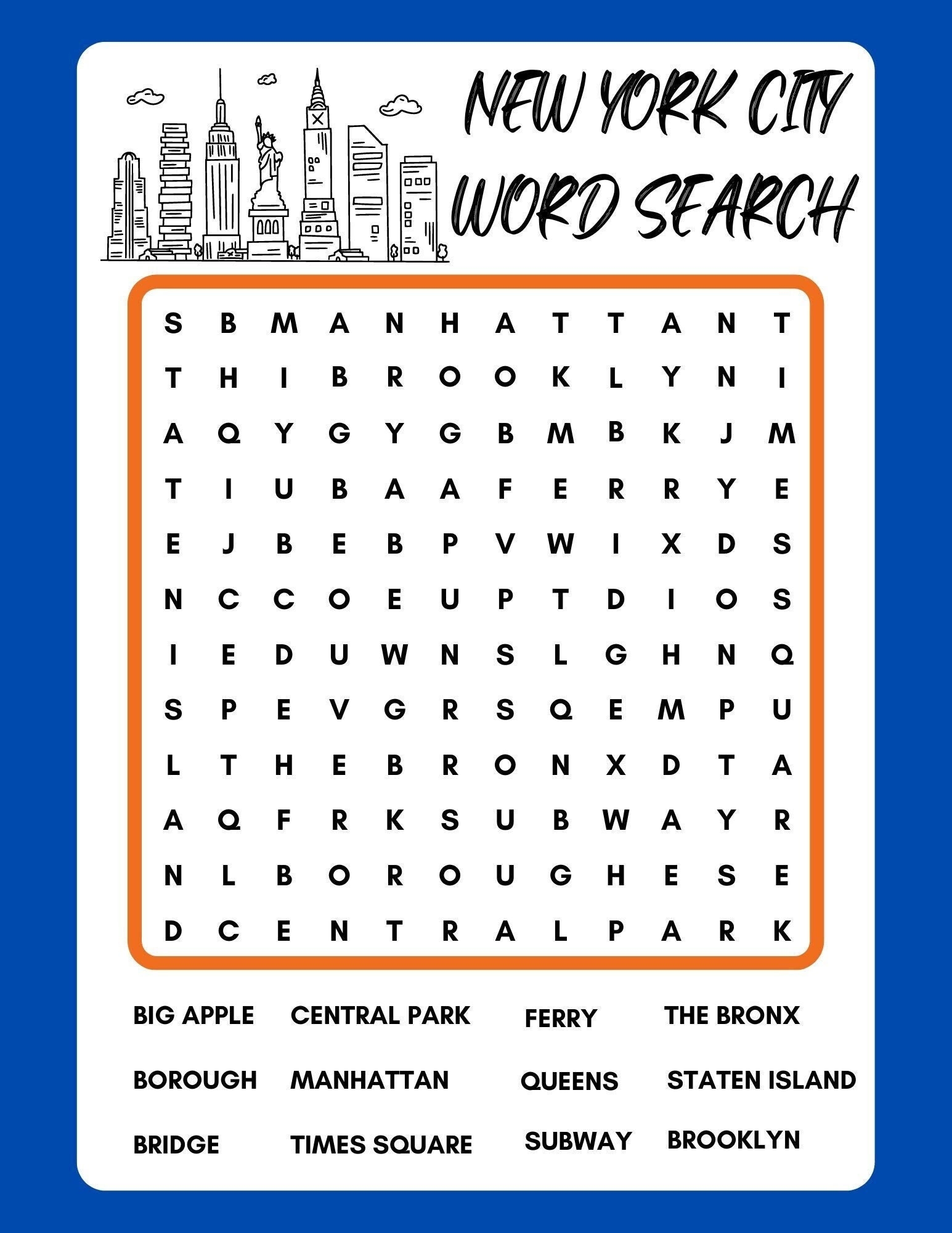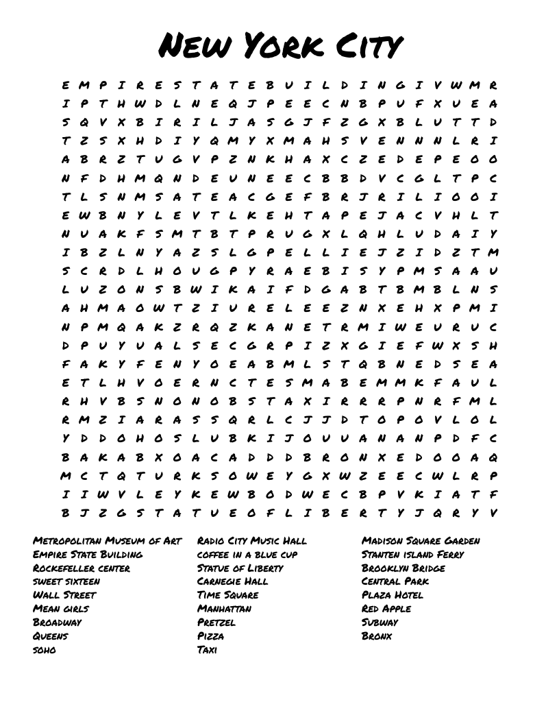 Whether you’re a resident, a tourist, or just a fan of the city, this word search is a fantastic way to celebrate all things New York. So why not give it a try today and see how many words you can find? You might just discover some new favorites along the way!