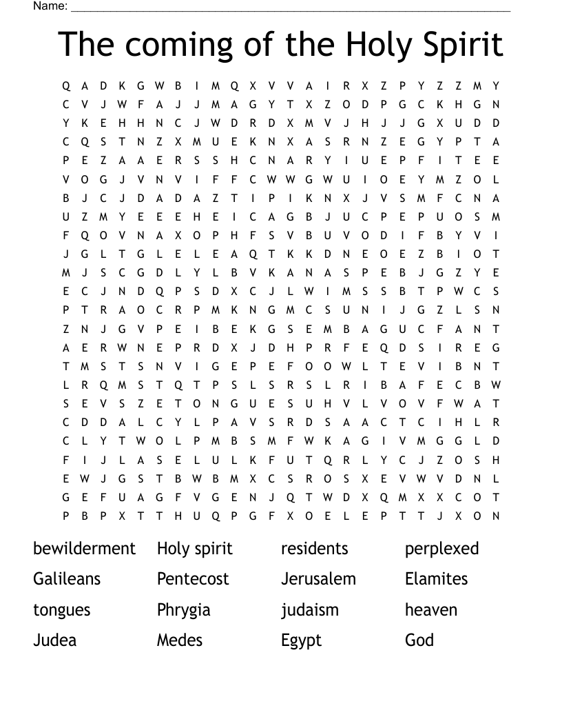 The Coming Of The Holy Spirit Word Search WordMint