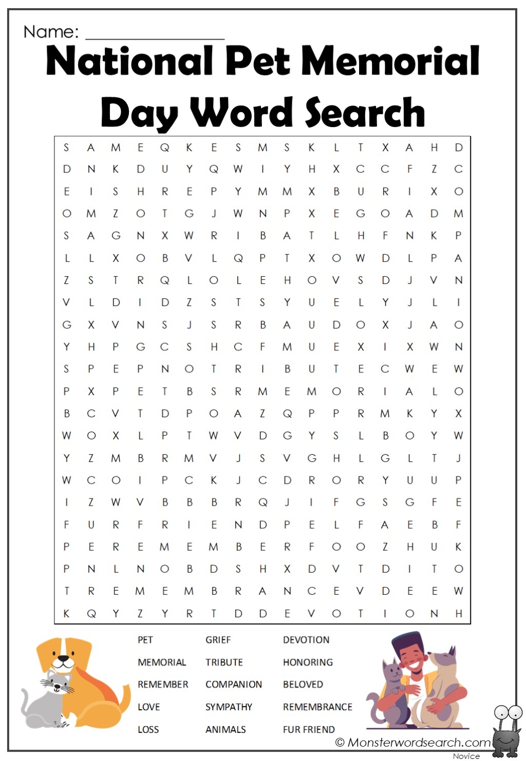 National Pet Memorial Day Word Search Monster Word Search