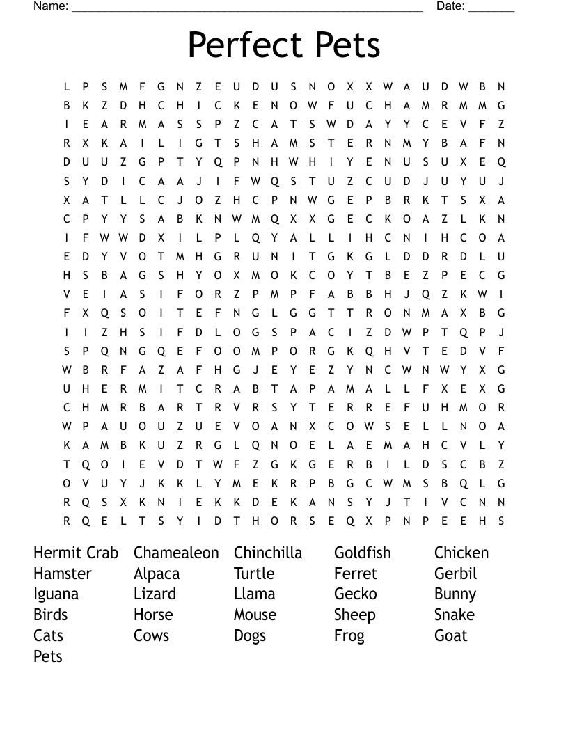 Perfect Pets Word Search WordMint