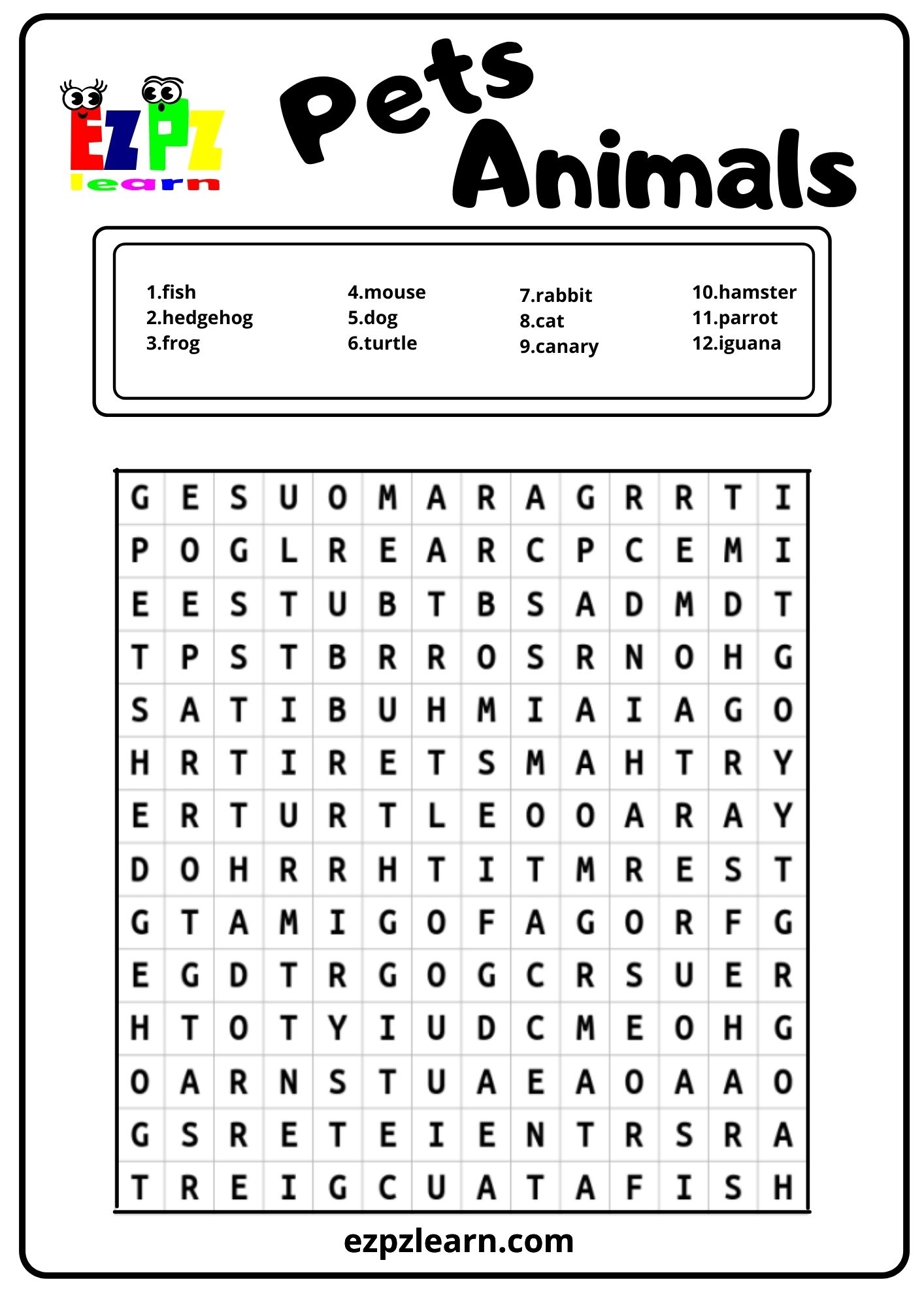 Pets Word Search Ezpzlearn