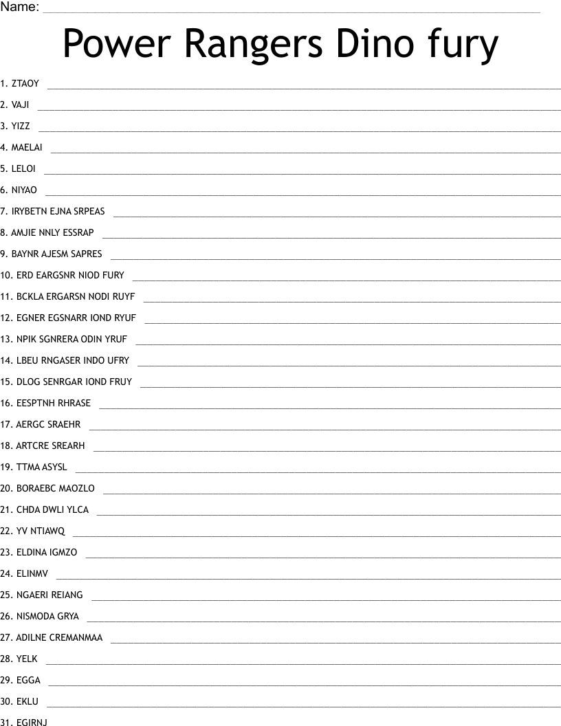 Power Rangers Dino Fury Word Scramble WordMint