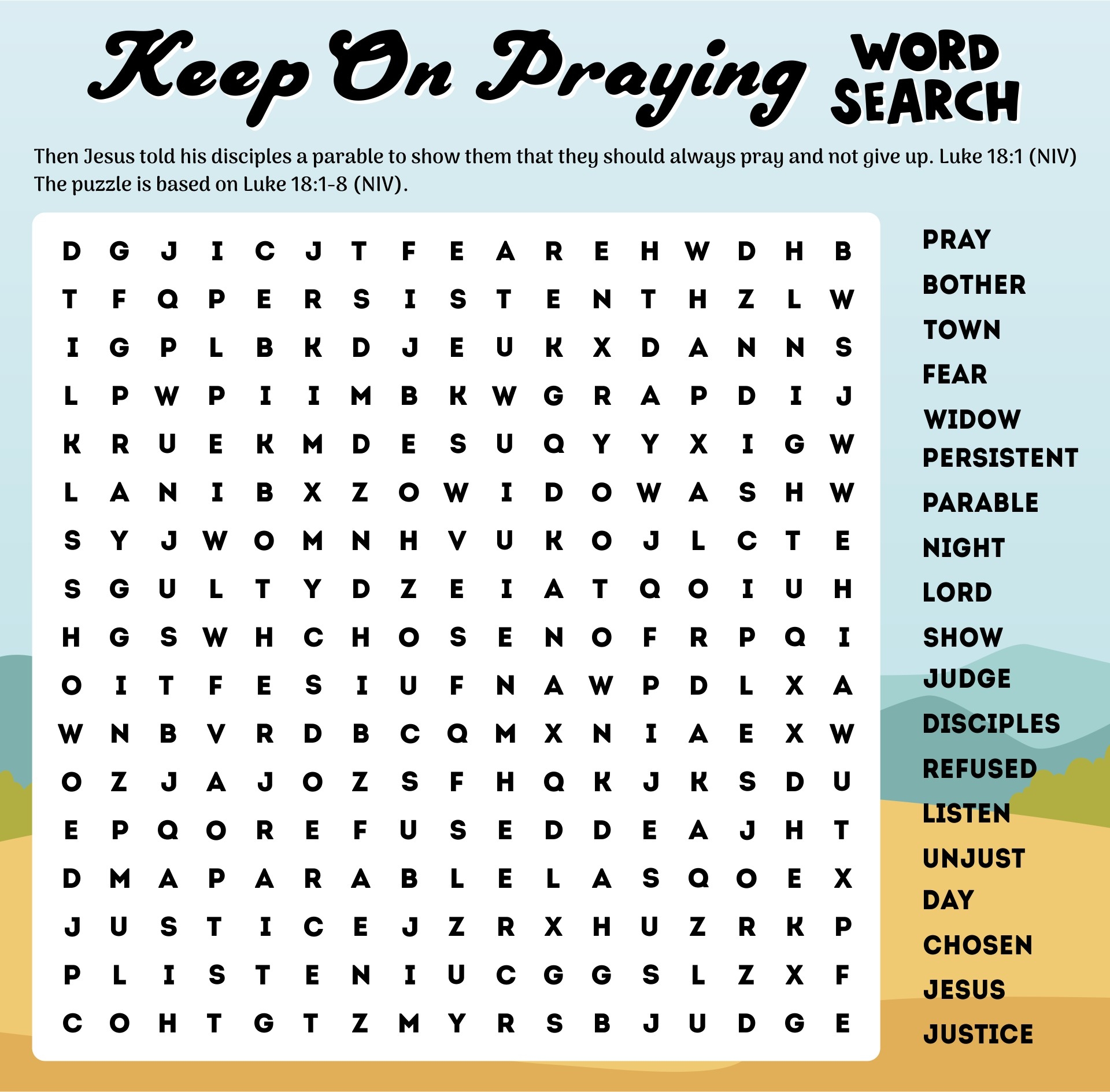 Prayer Word Search Printable