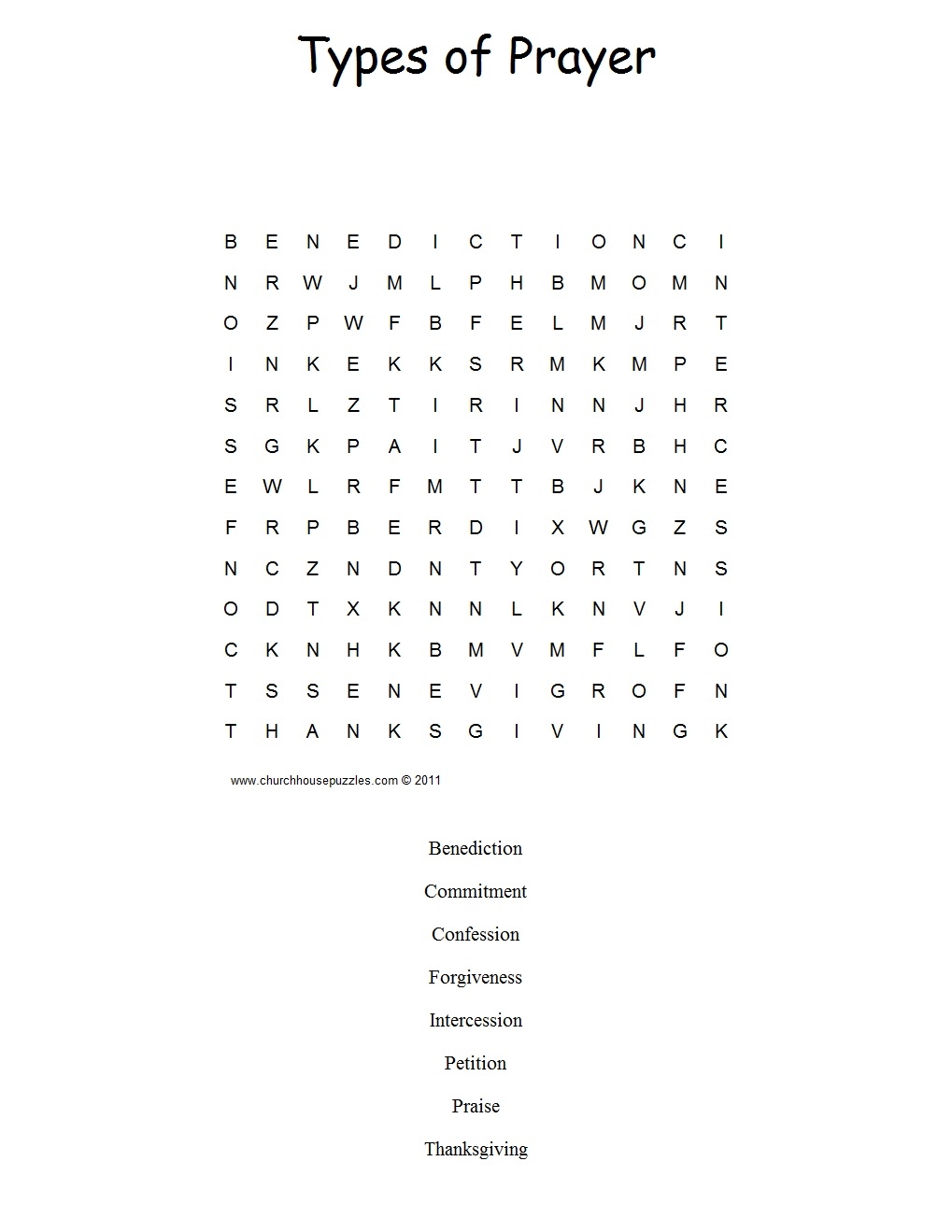 Types Of Prayer Word Search Puzzle