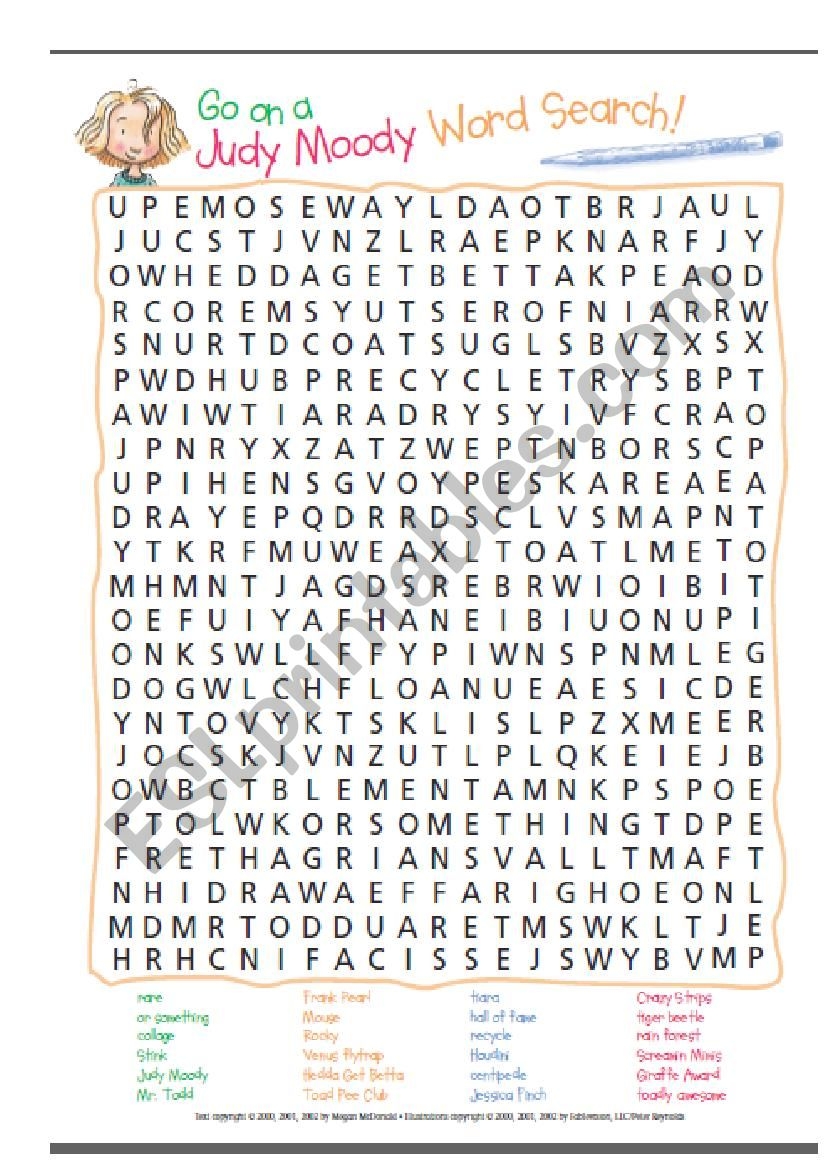 Judy Moody Wordsearch ESL Worksheet By Umhaha217