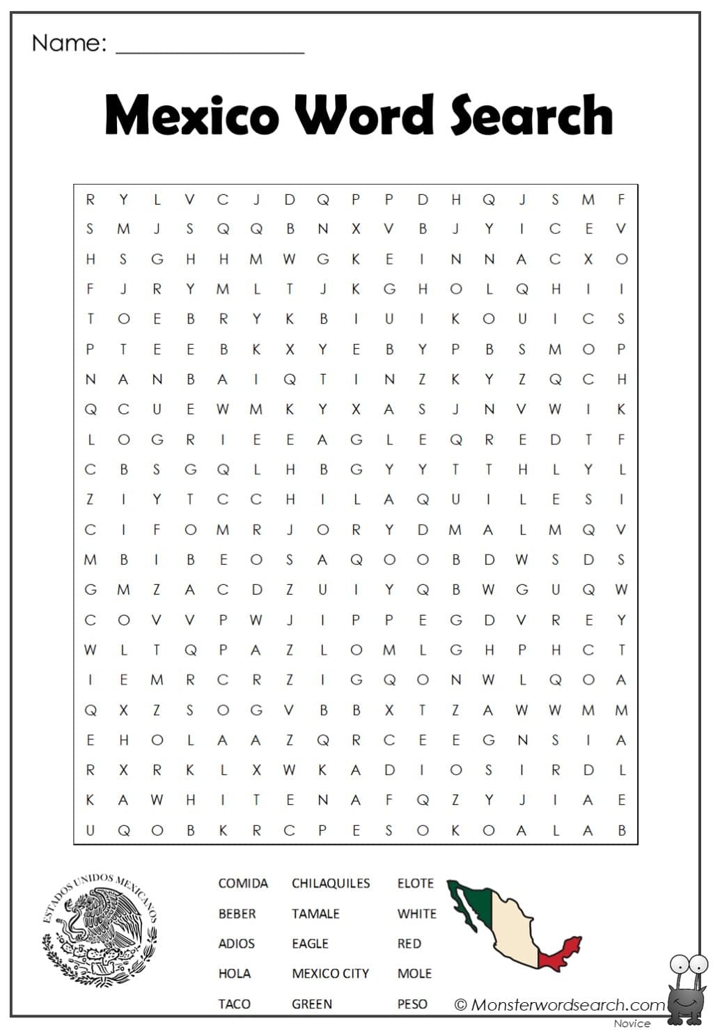 Mexico Word Search 2 Monster Word Search