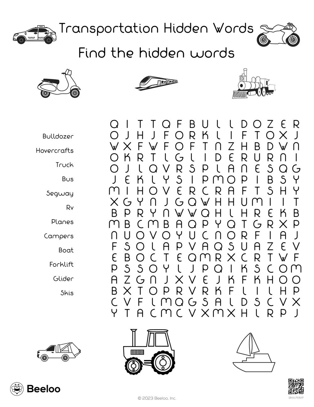 With words like “car,” “train,” “plane,” and more hidden in the grid, kids will have a blast searching for them. It’s a great way to introduce them to different modes of transportation while keeping them engaged and entertained.