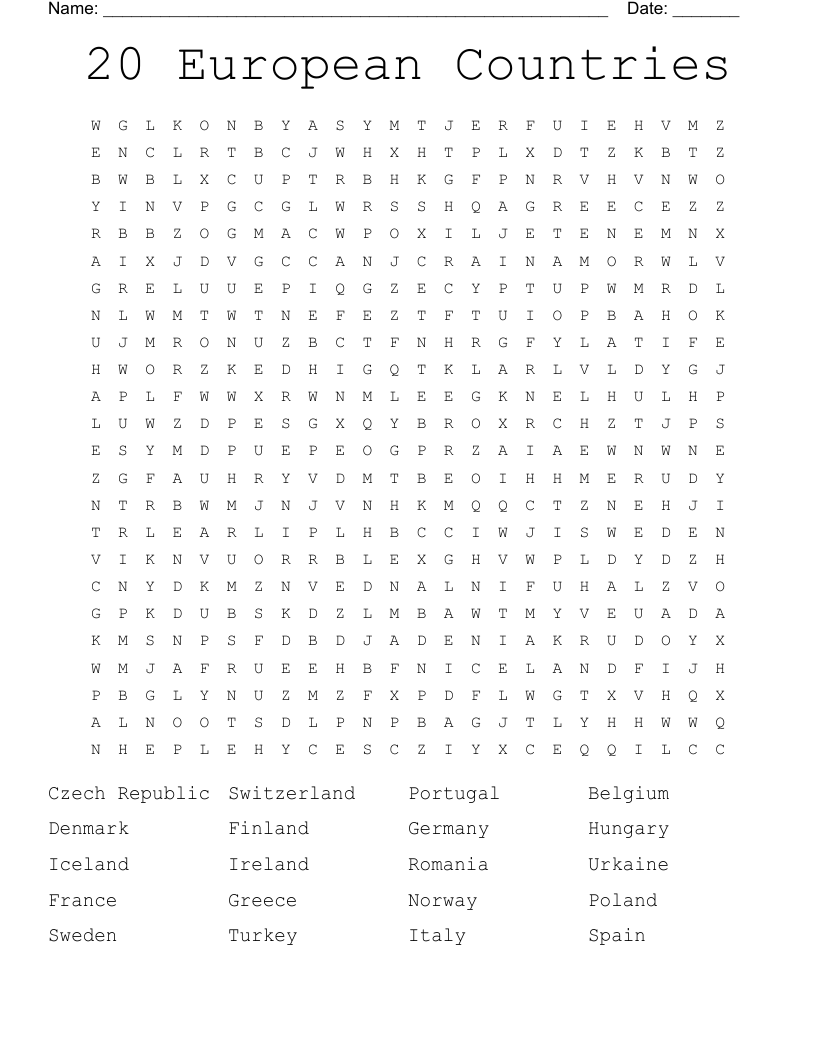 Are you a fan of word search puzzles and European countries? If so, you’re in luck! We have a printable word search puzzle that combines the two for a fun and challenging activity.
